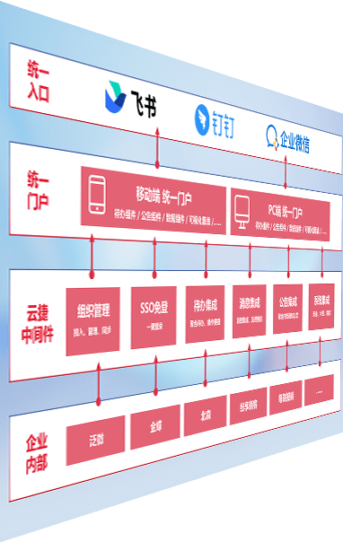 对协作平台提供支持服务,,,,支持企业应用与协作平台对接,,,包含组织同步、、、消息集成、、待办集成等。。。。支持目前主流的协作平台:钉钉、、、企微和飞书。。