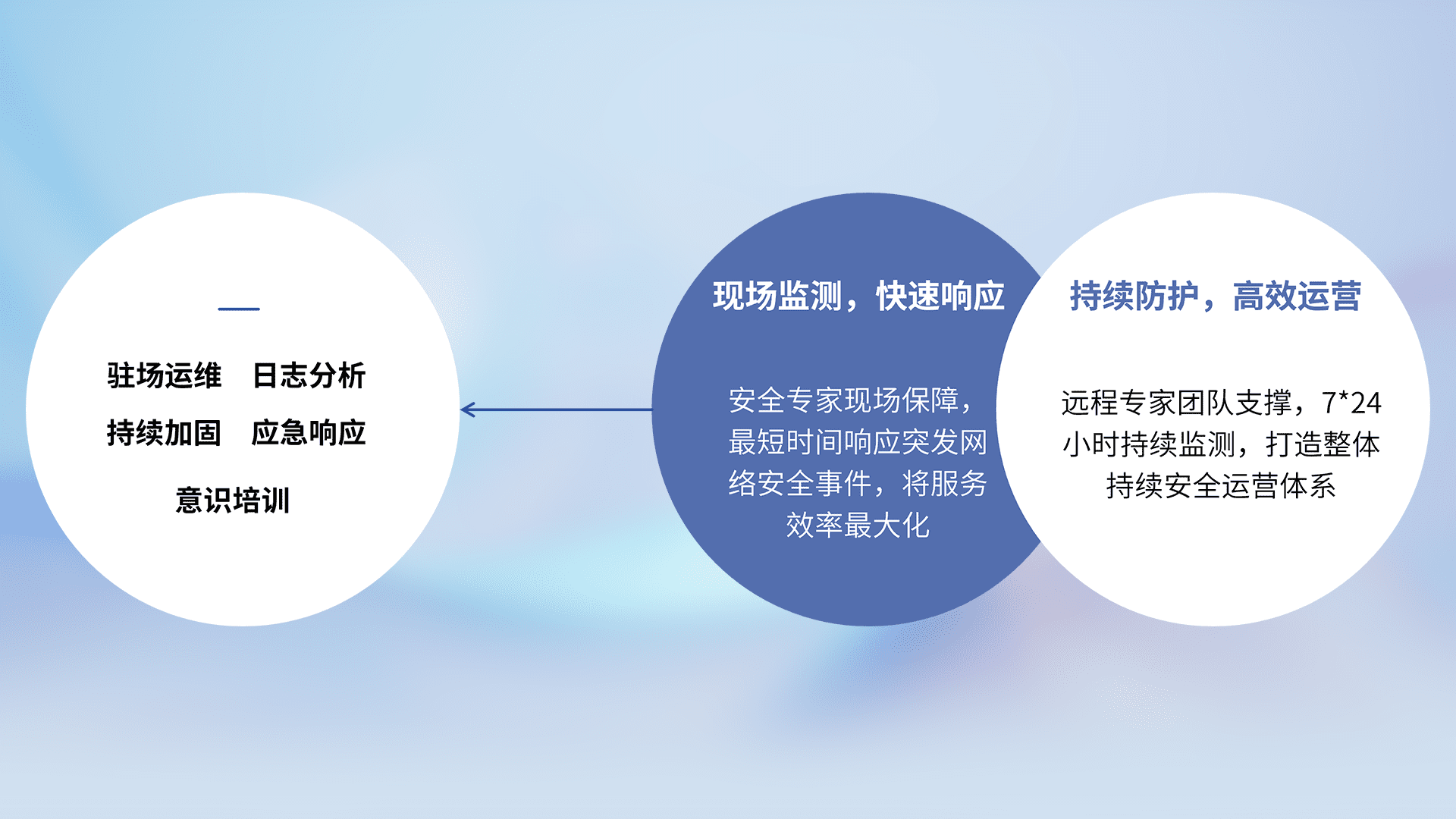 7X24小时持续监测安全事件,保持安全策略有效性,降低资产脆弱性风险,,,精准拦截黑客攻击,,,,减少被黑客利用的机会,,,第一时间遏制,,,,降低损失。。。